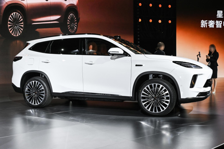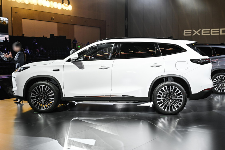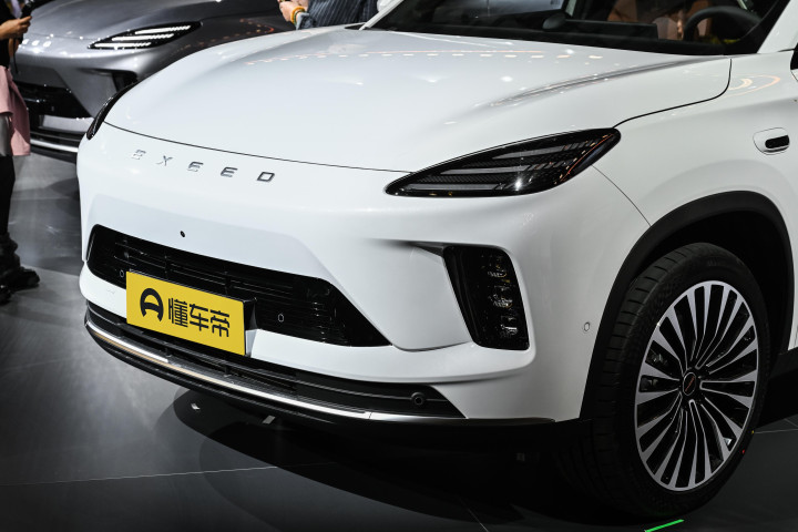 它没有搞那种特别夸张的大鲶鱼嘴或者奇怪的灯带,整体造型比较圆润饱满。前脸是分体式大灯,上面的日行灯是三条线,点亮后挺有辨识度。车身侧面线条很流畅,有个小小的溜背造型,看着比较动感。