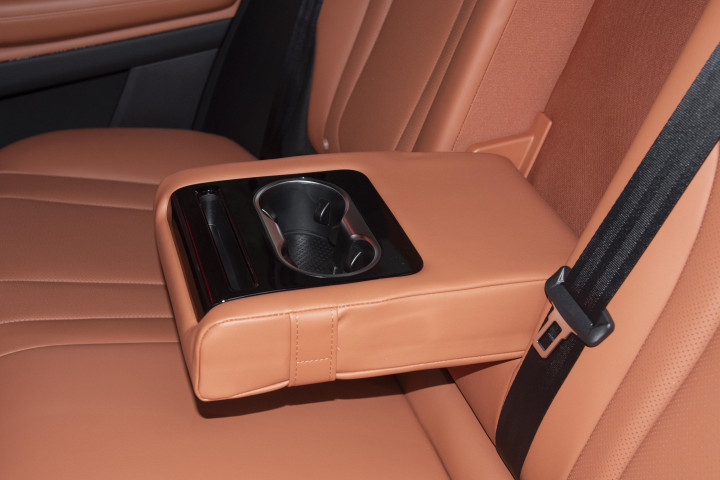 内饰的做工和用料也挺讲究。仪表台、车门板这些经常摸到的地方,基本都是软包材质,摸上去手感细腻。顶配车型还有麂皮顶棚,看起来很有质感。座椅用的是 Nappa 真皮和麂皮混搭,透气性不错,坐着也舒服。
